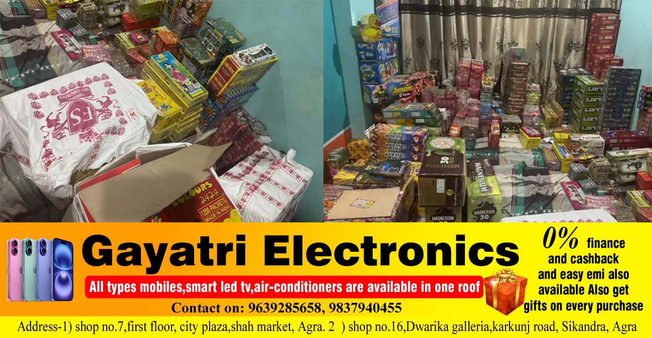 आगरालीक्स…आगरा में दिवाली पर आतिशबाजी बेचने के लिए घरों में स्टॉक कर रहे पटाखे. जयपुर हाउस स्थित एक घर में मिली 400 किलो से ज्यादा आतिशबाजी