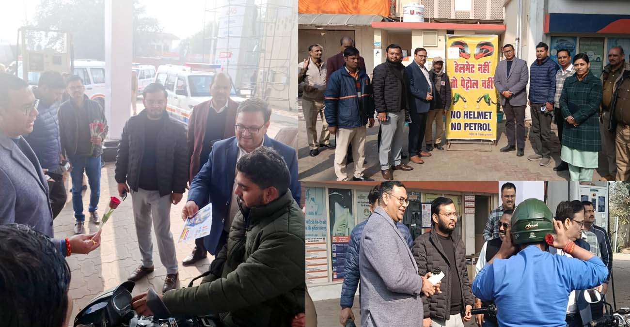 आगरालीक्स…आगरा में गुलाब का फूल देकर कहा—पेट्रोल पंप पर आएं तो हेलमेट पहनकर ही आएं. 400 से अधिक बाइकों व स्कूटी के चालान भी कटे.