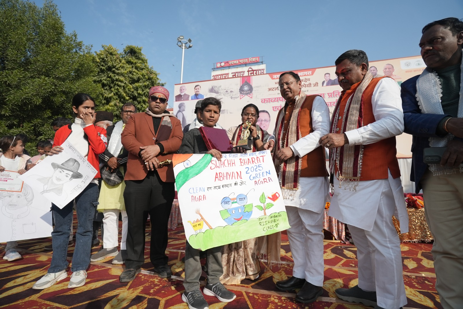 स्वच्छता एवं पर्यावरण संरक्षण क्षेत्र में नगर निगम, आगरा की 5R पहल (Reduce, Reuse, Recycle, Repurpose, Refuse) तथा “Zero Waste Market” जैसे नवाचारों का विशेष रूप से उल्लेख करते हुए वक्ताओं ने नागरिकों से सिंगल यूज़ प्लास्टिक से पूरी तरह दूरी बनाने की अपील की। कार्यक्रम के दौरान उपयोग में लाए गए फ्लेक्स/बैनर व अन्य सामग्री को पुनःउपयोग हेतु स्वयं सहायता समूहों को सौंपने की घोषणा भी की गई, ताकि “कचरे से कंचन” की अवधारणा को व्यवहारिक स्वरूप दिया जा सके। समापन सत्र में विजेता प्रतिभागियों को प्रमाणपत्र एवं स्मृति‑चिन्ह प्रदान किए गए और सभी प्रतिभागियों को स्वच्छता दूत बनकर अपने‑अपने वार्डों में जागरूकता अभियान चलाने के लिए प्रेरित किया गया। कार्यक्रम में भाजपा महानगर राजकुमार गुप्ता, विधायक पुरुषोत्तम खंडेलवाल ,विधायक डॉ जीएस धर्मेश, एमएलसी विजय शिवहरे, नगर निगम आगरा के पार्षदगण व अन्य तमाम लोगों की उपस्थिति रही। कार्यक्रम क संचालन भाजयुमो ब्रज क्षेत्र मंत्री गौरव राजावत और भाजयुमो महानगर अध्यक्ष शैलू पंडित ने किया।