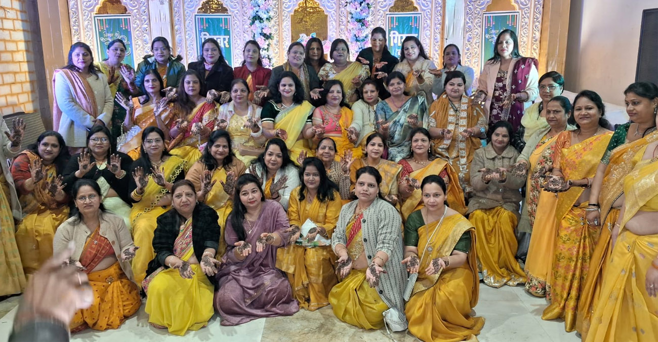 गोवर्धन के गिरिराज महाराज को समर्पित दिव्य 56 भोग महोत्सव की तैयारियों के क्रम में रिंग रोड, विजय नगर स्थित पुरुषोत्तम ग्रीन परिसर भक्ति, आनंद और आध्यात्मिक उल्लास से गूंज उठा। गिरिराज जी के पावन नाम से सजे हाथ, भजन-कीर्तन और नृत्य की स्वर लहरियों ने महिलाओं के साथ पुरुष सदस्यों की सहभागिता को और भी मनमोहक बना दिया। श्रद्धालुओं के हाथों पर “जय गिरिराज महाराज”, “श्री गिरिराज” एवं “राधे राधे” जैसे पावन नामों की मेहंदी सजाई गई। पूरे परिसर में भजन-कीर्तन के मधुर स्वर और सांस्कृतिक नृत्य चलते रहे, जिसमें उपस्थित श्रद्धालु भक्ति रस में डूबकर गिरिराज महाराज की महिमा का गुणगान करते नजर आए।