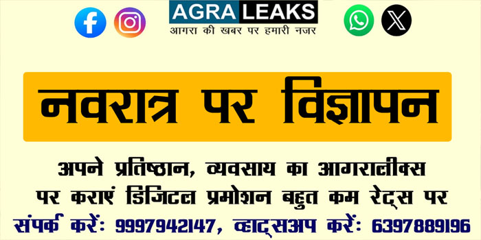 आगरालीक्स:…Agra News: आगरा में जीएसटी में हुए बदलाव से नवरात्र पर बंपर खरीदारी होगी, आपके शोरूम, ब्रांड पर ग्राहक उमड़ें, आगरालीक्स पर विज्ञापन के लिए संपर्क करें 9997942147, व्हाटस एप करें 6397889196 ( Agra News: Promote your brand, showroom with Agraleaks, Full detail#Agra)