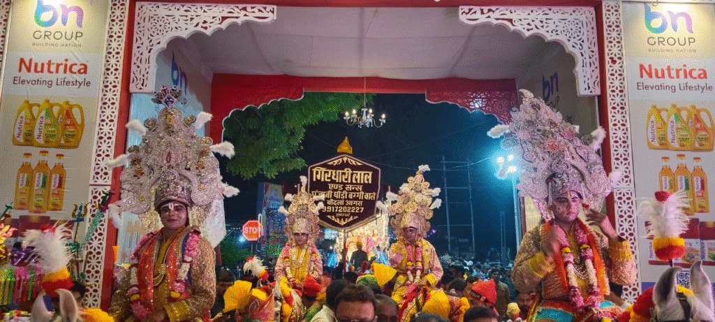 जनकपुरी महोत्सव के अंतर्गत गुरुवार दोपहर विवाह के बाद शाम को महाराजा अग्रसेन सेवा सदन कमला नगर से आकर्षक डोले में विराजमान जगत जननी जानकी के साथ बैंड बाजों की भजन लहरियों पर प्रभु राम जब अपने भाइयों सहित अलग-अलग घोड़ों पर नगर भ्रमण करते हुए जनक मंच पहुंचे तो पूरी मिथिला नगरी में श्रद्धा, आस्था, स्वागत, दर्शन, आरती और पुष्प वर्षा का ऐसा अनवरत अनूठा सिलसिला चला कि हर कोई इस अलौकिक नजारे को मोबाइल में कैद करता नजर आया। प्रभु राम को अपने रूबरू देखकर मिथिला वासी भावविह्वल हो गए।