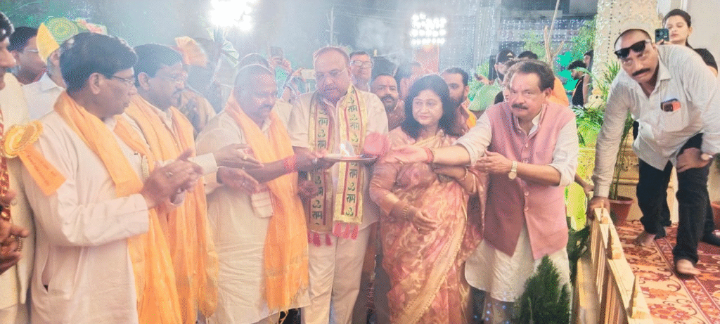 जनक मंच पहुंचने पर ड्रोन द्वारा प्रभु के स्वरूपों पर पुष्प वर्षा और आतिशबाजी की गई। श्री जनकपुरी महोत्सव आयोजन समिति के अध्यक्ष मुरारी प्रसाद अग्रवाल ने शंखनाद किया। केंद्रीय राज्य मंत्री एसपी सिंह बघेल, उनकी धर्मपत्नी श्रीमती मधु बघेल, राज्यसभा सांसद नवीन जैन, दर्जा प्राप्त राज्य मंत्री राकेश गर्ग, विधायक जीएस धर्मेश, एमएलसी विजय शिवहरे और नीतेश शिवहरे ने ‘हे राजा राम! तेरी आरती उतारूँ’ की मधुर धुन पर प्रभु सियाराम की युगल मनोहर छवि की आरती उतारी। इस अवसर पर राज्यसभा सांसद नवीन जैन ने कहा कि प्रभु राम के चरित्र और आदर्श को हमें जीवन में उतारना चाहिए।
