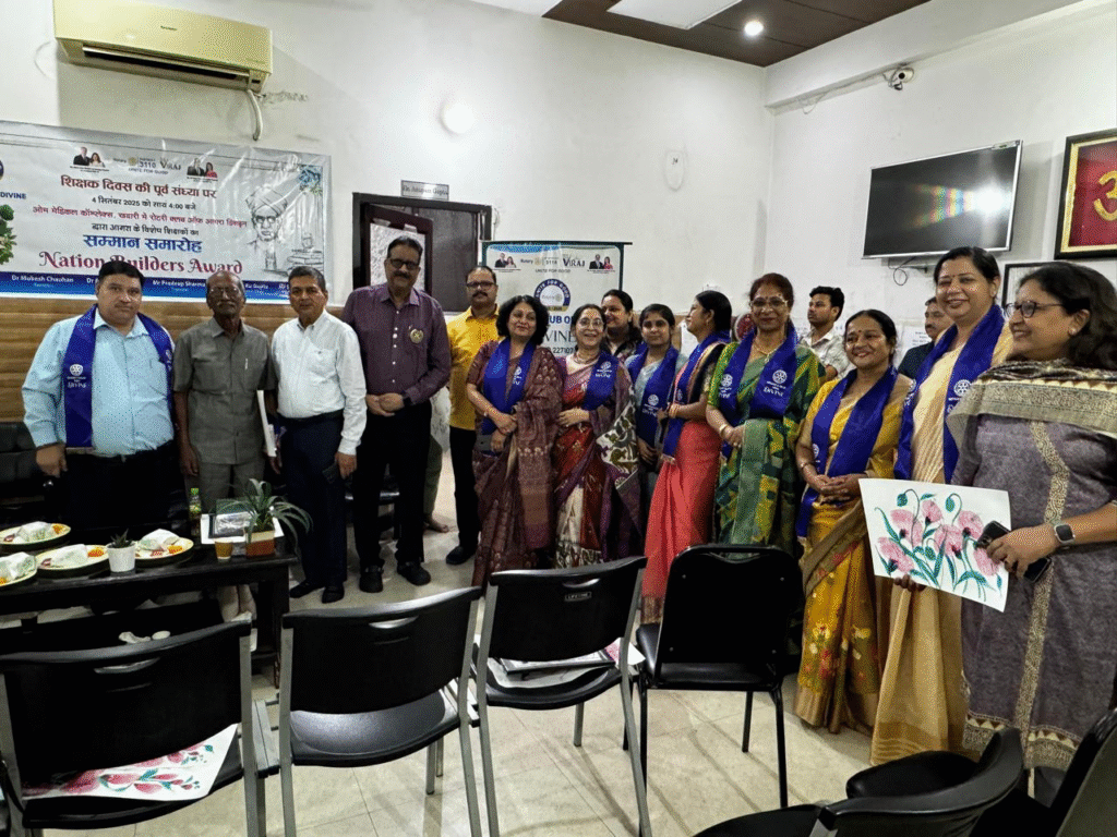 आगरालीक्स…आगरा में टीचर्स डे को लेकर रोटरी क्लब ऑफ डिवाइन ने शिक्षकों को दिया नेशन बिल्डर अवार्ड. बच्चों के भविष्य को संवारने वाले 11 शिक्षकों को किया गया सम्मानित