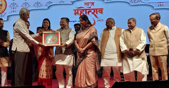 33वें ताज महोत्सव 2025, संस्कृति के महाकुंभ के अंतर्गत सांस्कृतिक मंच का सफल समापन की घोषणा की गई, बताया गया कि शिल्पी स्टॉल, हस्तकला, पॉटरी, हैण्डलूम आदि का बाजार ताज महोत्सव में 02 मार्च तक रहेगा, जिसमें शहरवासी खरीददारी कर सकते हैं। मंत्री ने अपने सम्बोधन में कहा कि महाकुम्भ में सभी ने जाति धर्म, जाति सम्प्रदाय ऊंच नीच से ऊपर उठकर समरस्ता के वातावरण में एक ही घाट पर आस्था की डुबकी लगाई, केन्द्र में पीएम मोदी तथा राज्य में योगी के नेतृत्व में महाकुम्भ का सफल सुन्दर आयोजन कर पूरे विश्व में भारत के गौरव को बढाया है। कुम्भ के आयोजन पर विश्व स्तर की एजेंसियां शोध कर रही हैं। सनातन संस्कृति नई ऊंचाई व परम वैभव पर पहुंची है, भारत अपने पुराने स्वरूप को प्राप्त कर विश्वगुरू बनेगा, महाकुम्भ के आयोजन ने भारतीय संस्कृति को सम्पूर्ण विश्व में पहुंचाया है, इसके आयोजन ने उप्र के प्रत्येक नागरिक का सहयोग रहा है।