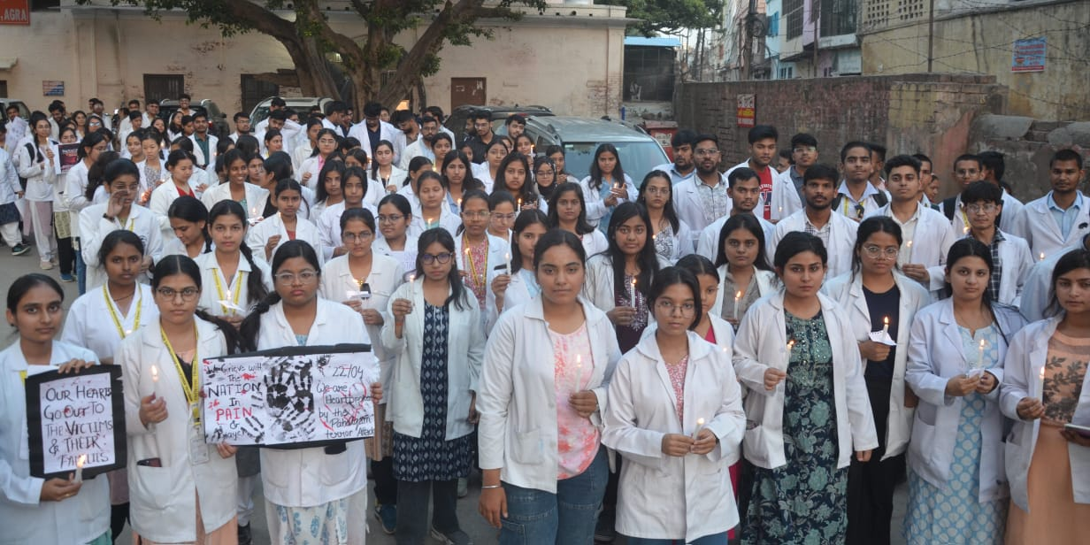 आगरालीक्स…आगरा में एसएन के डॉक्टरों ने भी निकाला कैंडल मार्च. आतंकी हमले को लेकर जताया आक्रोश. डॉक्टरों ने की कठोर कार्रवाई की मांग