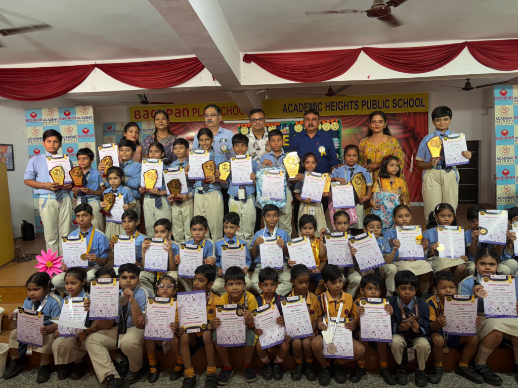 अंत में बचपन और एकेडमिक हाइट्स पब्लिक स्कूल आगरा के प्रधानाचार्य मोहित गर्ग और गुंजन गर्ग (निदेशक) जी ने उत्साह वर्धन किया और सभी विजेताओ विद्यार्थियों को प्रमाण पत्र और मेडल्स देकर सम्मानित किया इस कार्यक्रम को सफल बनाने में दीप्ति चौहान (कोऑर्डिनेटर), परनिता निगम (कोउनसेलर), और सभी कक्षा अध्यापिकाओ का योगदान रहा और सभी प्रतिभागियों और विजेताओं को हार्दिक बधाई दीं, उनकी उत्साह और समर्पण की सराहना किया।