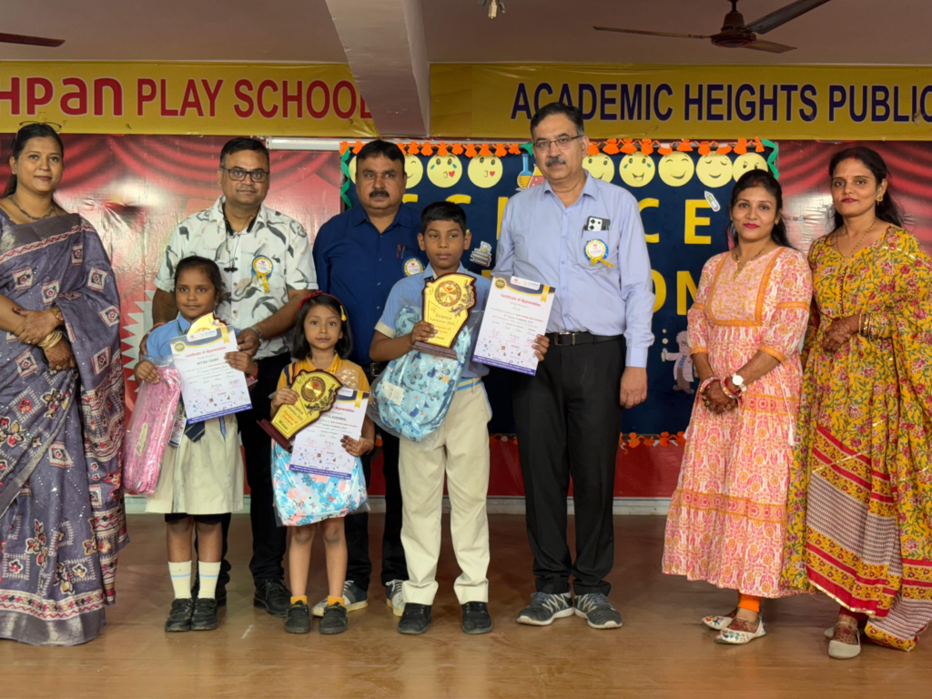 एकेडमिक हाइट्स पब्लिक स्कूल आगरा, सिकंदरा, आगरा में विज्ञान प्रदर्शनी (Science Exhibition) का भव्य आयोजन किया गया। इस अवसर पर विद्यालय के मुख्य अतिथि समीर सक्सेना एवं पुनीत चतुर्वेदी (निदेशक) स्पेक्ट्रा स्टडी सर्किल (जज) के रूप में उपस्थित रहे। कार्यक्रम में कक्षा यूकेजी से लेकर कक्षा 6 तक के छात्रों ने विभिन्न विज्ञान विषयों पर अपने-अपने मॉडल तैयार किए और उत्कृष्ट प्रस्तुति दी। बच्चों ने अपने मॉडलों के माध्यम से वैज्ञानिक सिद्धांतों को बड़े ही रोचक एवं रचनात्मक ढंग से प्रदर्शित किया। प्रत्येक विद्यार्थी ने आत्मविश्वास और कुशलता के साथ अपने प्रोजेक्ट की जानकारी जजों के समक्ष प्रस्तुत की।