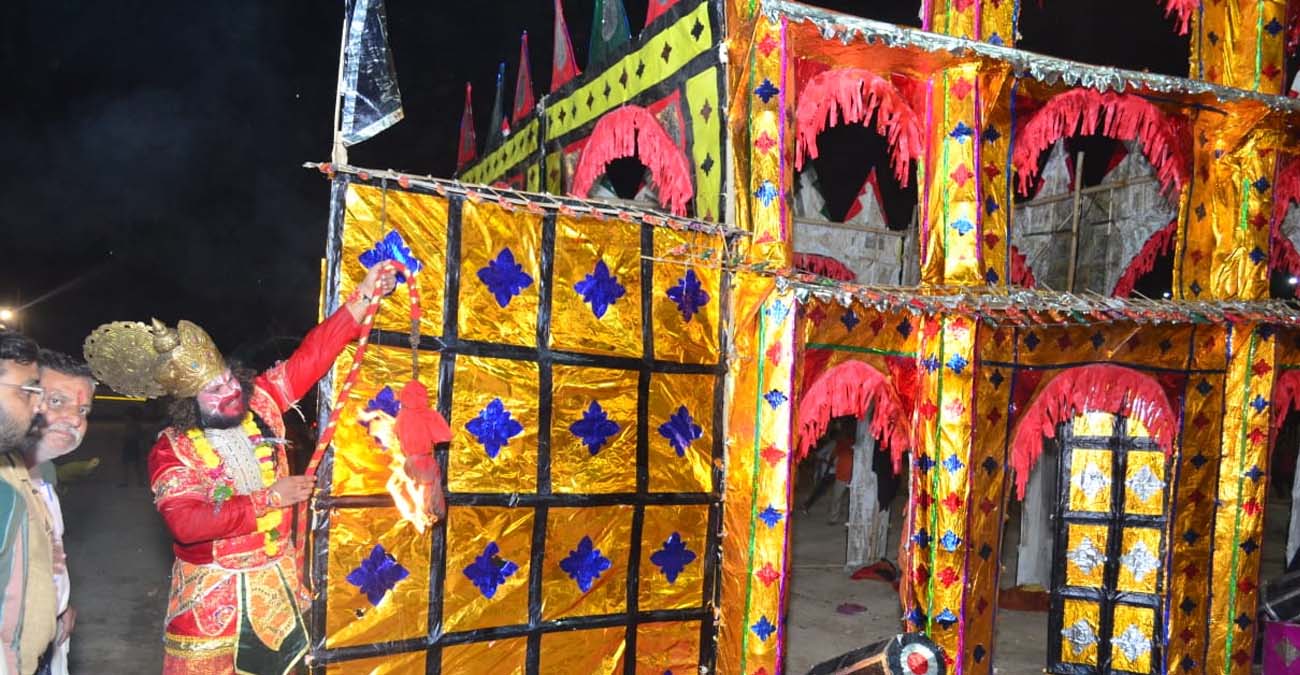 रावण ने हनुमान जी की पूंछ में आग लगाने का आदेश दिया, जिससे हनुमान जी ने कुछ ही देर में रावण की सोने की लंका को जलाकर उसका अहंकार तोड़ दिया। तभी मैदान में गूंज उठता है-लंका जारि असुर दल मारे, रामचंद के काज संवारे।