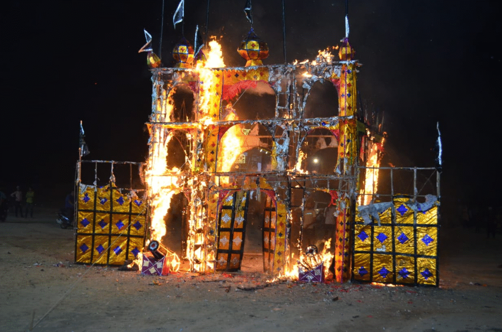 आगरालीक्स…लंका जारि असुर दल मारे…आगरा की रामलीला मेें हुआ लंका दहन. रामलीला मैदान में तीन मंजिली सोने की लंका धू-धू कर जल उठी