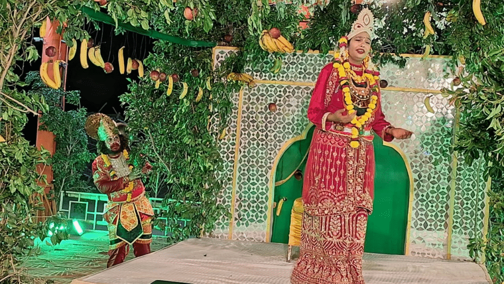 मंच और उसके दोनों ओर लगी एलईडी स्क्रीन पर लीला का मनमोहक मंचन दर्शक देखकर मंत्रमुग्ध थे। लीला में दिखाया कि समुद्र के किनारे श्रीराम की सेना पहुंच जाती है। सुग्रीव द्वारा शक्ति का अहसास कराने पर हनुमान जी भगवान श्रीराम का नाम लेकर समुद्र पार करने के लिए छलांग लगाते हैं। लंका में अशोक वाटिका पहुंच कर वे सीता जी की खोज कर लेते हैं। राम दूत होने का विश्वास दिलाने के लिए वे मुद्रिका भी माता सीता की गोद में गिरा देते हैं। उसके बाद उन्होंने अशोक वाटिका उजाड़ दी। विभिन्न दृश्यों के मंचन के बाद रावण द्वारा हनुमान जी की पूंछ में आग लगाने की लीला का मंचन होता है।