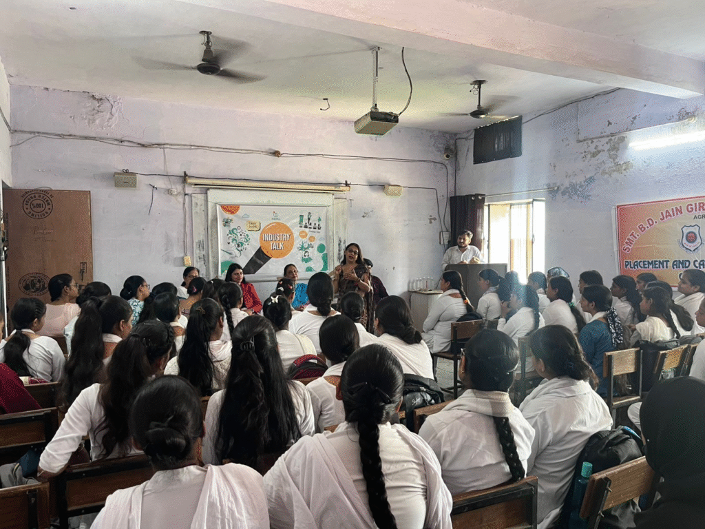 मेधा एवं श्रीमती बीडी जैन गर्ल्स पीजी कॉलेज, आगरा के संयुक्त तत्वावधान में आज एक एक्सपोज़र टॉक का आयोजन किया गया। इस अवसर पर मुख्य वक्ता के रूप में श्रीमती दिव्या बंसल ने छात्राओं को संबोधित किया। अपने 20+ वर्षों से अधिक के अनुभव के आधार पर दिव्या बंसल ने छात्राओं को प्रेरित करते हुए कहा कि “करियर बनाना केवल एक विकल्प नहीं, बल्कि आत्मनिर्भर बनने और समाज में अपनी पहचान बनाने का माध्यम है।” उन्होंने छात्राओं को अपने डर से बाहर निकलने, बड़े सपने देखने और विभिन्न करियर मार्गों के प्रति सजग रहने का संदेश दिया।