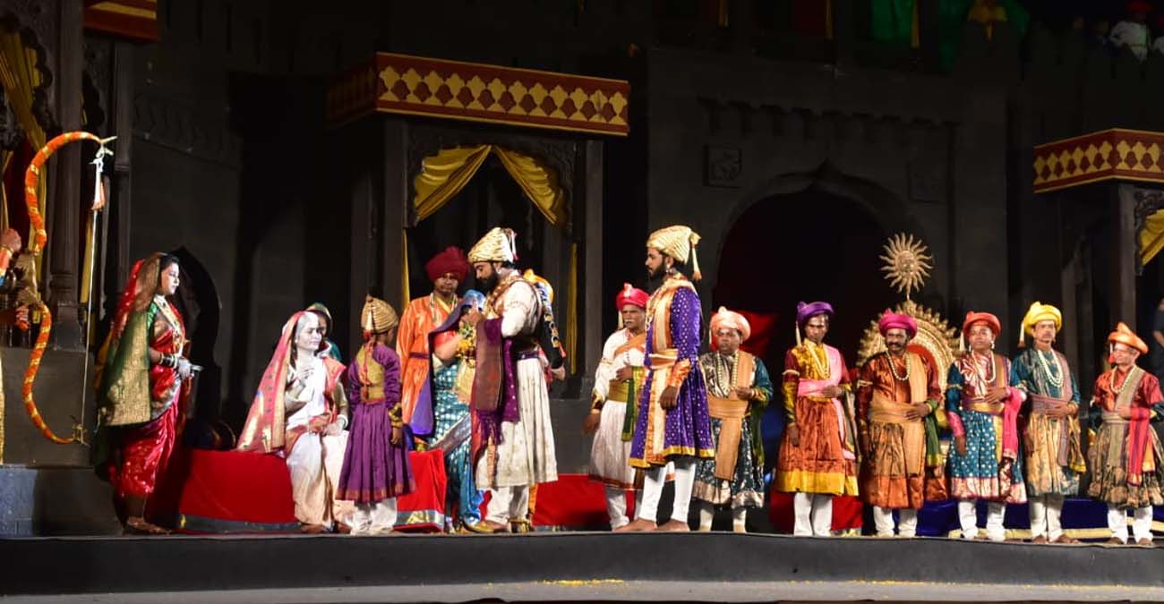 मंचन के दौरान कृष्ण भक्ति के प्रसंग भी हृदय को छू गए — गीत “तुम हो कृष्ण कन्हाई…” के माध्यम से शिवाजी महाराज के भक्तिभाव और ईश्वर के प्रति समर्पण की झलक ने वातावरण को आध्यात्मिक बना दिया। युद्धभूमि और राजनीति के बीच भी भक्ति, विनम्रता और आस्था का यह संतुलन दर्शकों को मंत्रमुग्ध कर गया। विशेष रूप से मां जीजाबाई की भूमिका ने नाटक में भावनात्मक गहराई जोड़ दी। उनके चरित्र के माध्यम से यह दिखाया गया कि शिवाजी महाराज के संस्कार, राष्ट्रनिष्ठा और स्त्री सम्मान की नींव जीजाबाई के मार्गदर्शन में ही पड़ी। मां जीजाबाई का धैर्य, दूरदृष्टि और धार्मिक संस्कार शिवाजी के जीवन की दिशा बन गए। नाटक में जब जीजाबाई पुत्र शिवाजी को धर्म, नीति और मर्यादा का पाठ पढ़ाती हैं, तो पूरा सभागार श्रद्धा से नतमस्तक हो जाता है।