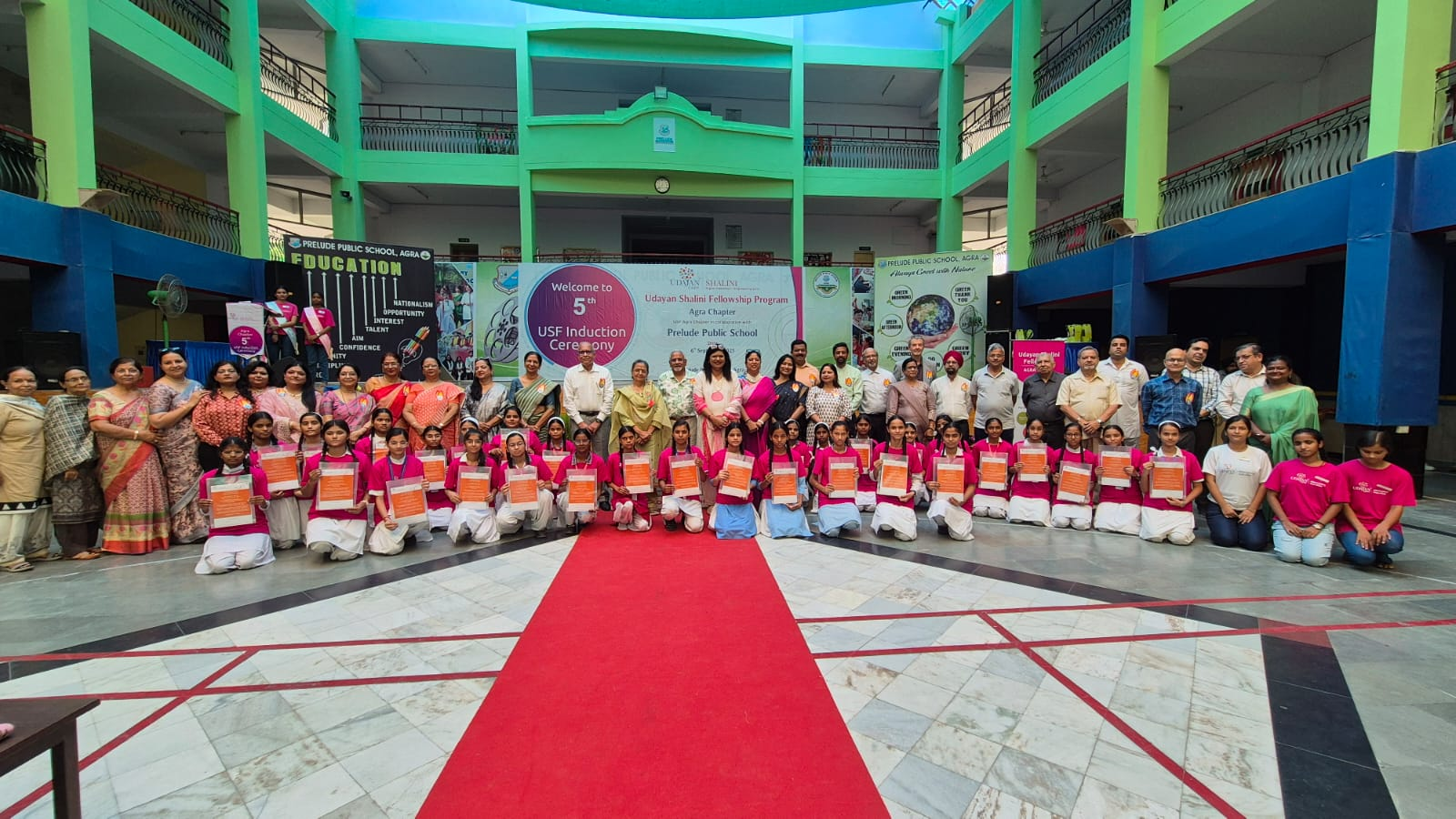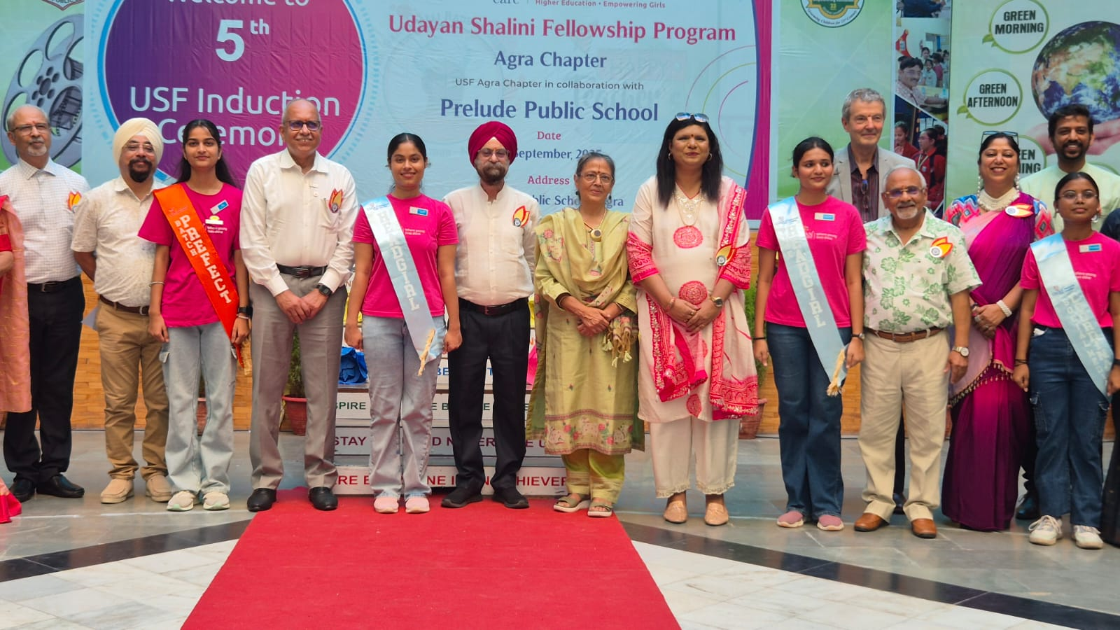 आगरा के प्रिल्यूड पब्लिक स्कूल, दयालबाग के प्रांगण में उदयन केयर के आगरा अध्याय के पाँचवे प्रेरण समारोह का आयोजन किया गया।सर्वप्रथम दीप प्रज्ज्वलन के बाद अतिथिगणों का प्रकृति की अमूल्य धरोहर नवांकुर प्रदान कर स्वागत किया गया। इसके बाद श्रुति वर्मा के निर्देशन में विभिन्न बैचों की शालिनियों का चयन करके कैबिनेट बनाई गई, जिसका विवरण निम्नांकित है-
