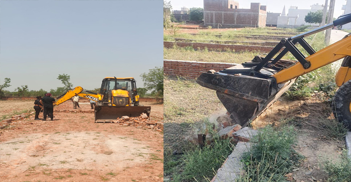 एडीए के प्रवर्तन दल ने ताजगंज वार्ड में विनोद यादव, पिन्टू यादव, उमेश शर्मा, मनोज शर्मा द्वारा मौजा चमरौली 125 फुटा रोड, ताजगंज-वार्ड, आगरा पर लगभग 4000 वर्गमी० भूमि पर विकसित की जा रही अनाधिकृत कॉलोनी को ध्वस्त कर दिया गया है।