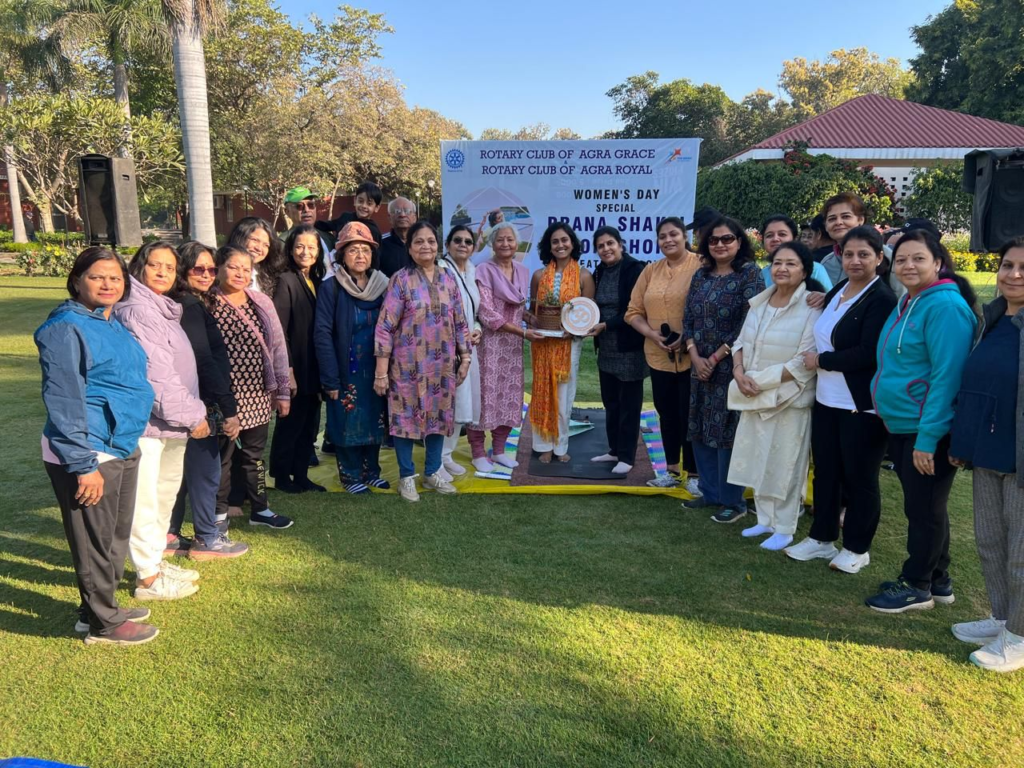आज अंतरराष्ट्रीय महिला दिवस के अवसर पर रोटरी क्लब ऑफ़ आगरा रॉयल और रोटरी क्लब ऑफ़ आगरा ग्रेस ने संयुक्तरूप से जो प्राणशक्ति कार्यशाला का आयोजन खेल गाँव में किया। कार्यक्रम का प्रारंभ करते हुए रोटरी ग्रेस की चार्टर अध्यक्ष डॉक्टर जयदीप मल्होत्रा ने प्रख्यात हठयोग प्रशिक्षक और प्राणायाम विशेषज्ञ कीर्ति अग्रवाल का परिचय दिया। रोटरी ग्रेस की चार्टर सचिव आशू मित्तल ने सभी अतिथियों का स्वागत किया। कीर्ति अग्रवाल ने सभी सदस्यों को प्राणायाम की बारीकियों को बताते हुए योगाभ्यास एवं प्राणायाम का अभ्यास भी कराया। उन्होंने बताया कि इन क्रियाओं का प्रतिदिन अभ्यास करने से आप मौसमी सर्दी-खांसी से दूर रह सकते हैं, पाचन क्रिया बेहतर हो सकती है, दृष्टि में सुधार हो सकता है और समग्र मानसिक स्वास्थ्य में वृद्धि हो सकती है।