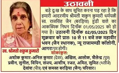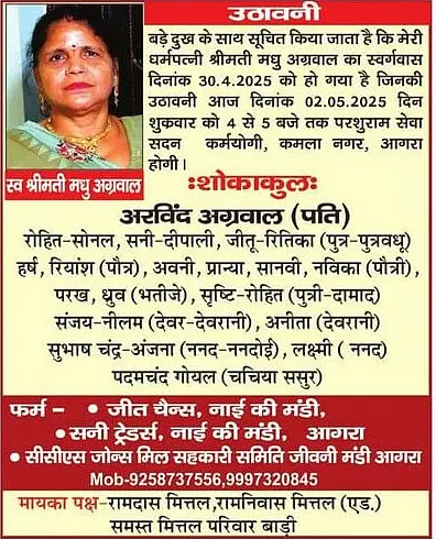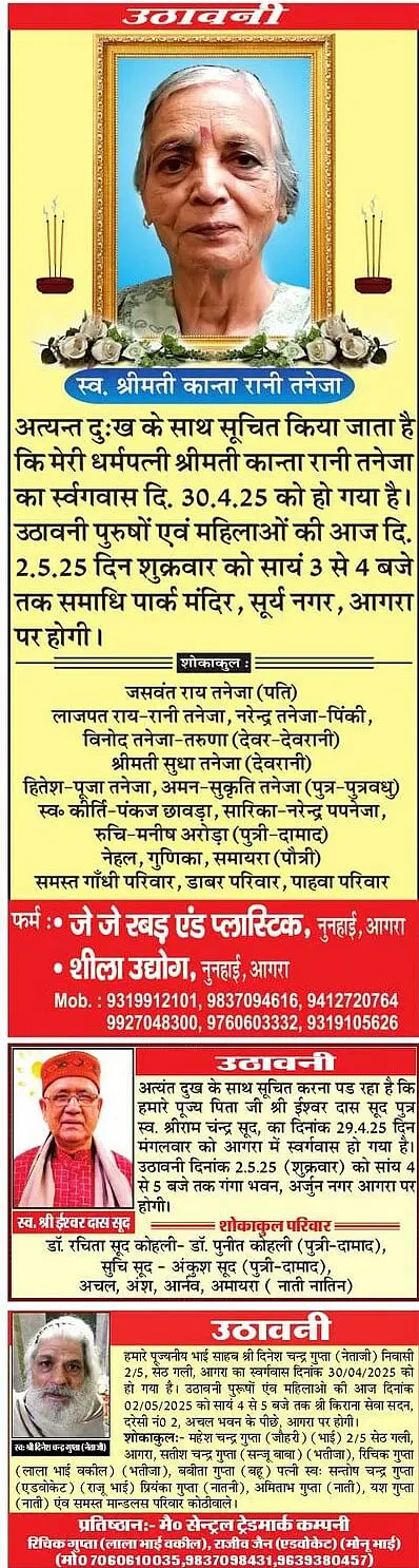 Agra Sad News: Obituaries Agra on 2nd May 2025