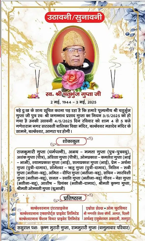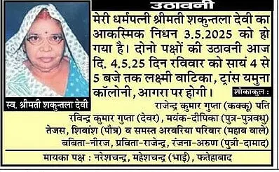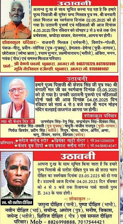 Agra Sad News: Obituaries Agra on 4th May 2025