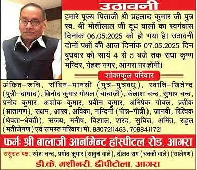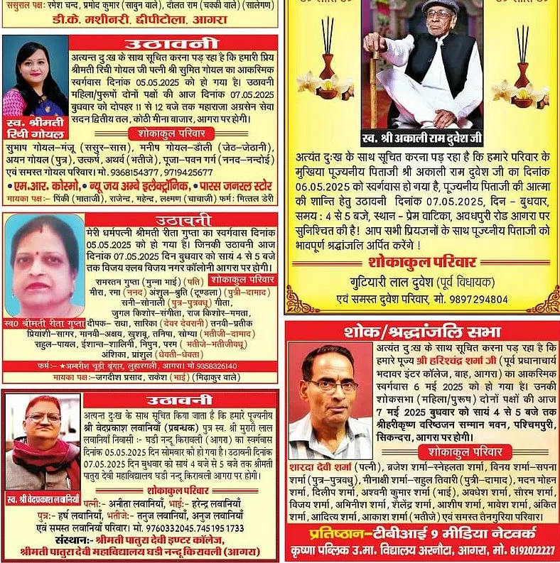 Agra Sad News: Obituaries Agra on 7th May 2025
