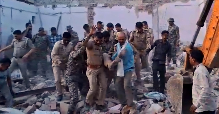 मलबे के अंदर फंसे लोग बचाने के लिए चीख पुकार कर रहे थे. इसके बाद स्थानीय लोगों के साथ मिलकर पुलिस ने मलबे के अंदर दबे लोगों को बाहर निकालना शुरू किया. मौके पर पुलिस, दमकल और एसडीआरएफ की टीम भी पहुंच गई. तुरंत चले रेस्क्यू के बाद मलबे के अंदर दबे लोगों को बाहर निकाला गया. हादसे में दो लागों की मौत की सूचना है. इनके नाम किशन उपाध्याय और विष्णु उपाध्याय हैं. दोनेां दुकान मालिक बताए गए हैं. हादसे में नौ लोगों को बाहर निकाला गया और उन्हें अस्पताल भर्ती कराया गया. इनके अलावा रेस्क्यू में लगे पुलिसकर्मी के ऊपर गर्डर गिर गया जिससे वो भी घायल हुए हैं. घायलों में ग्राहक और मजदूर भी हैं.