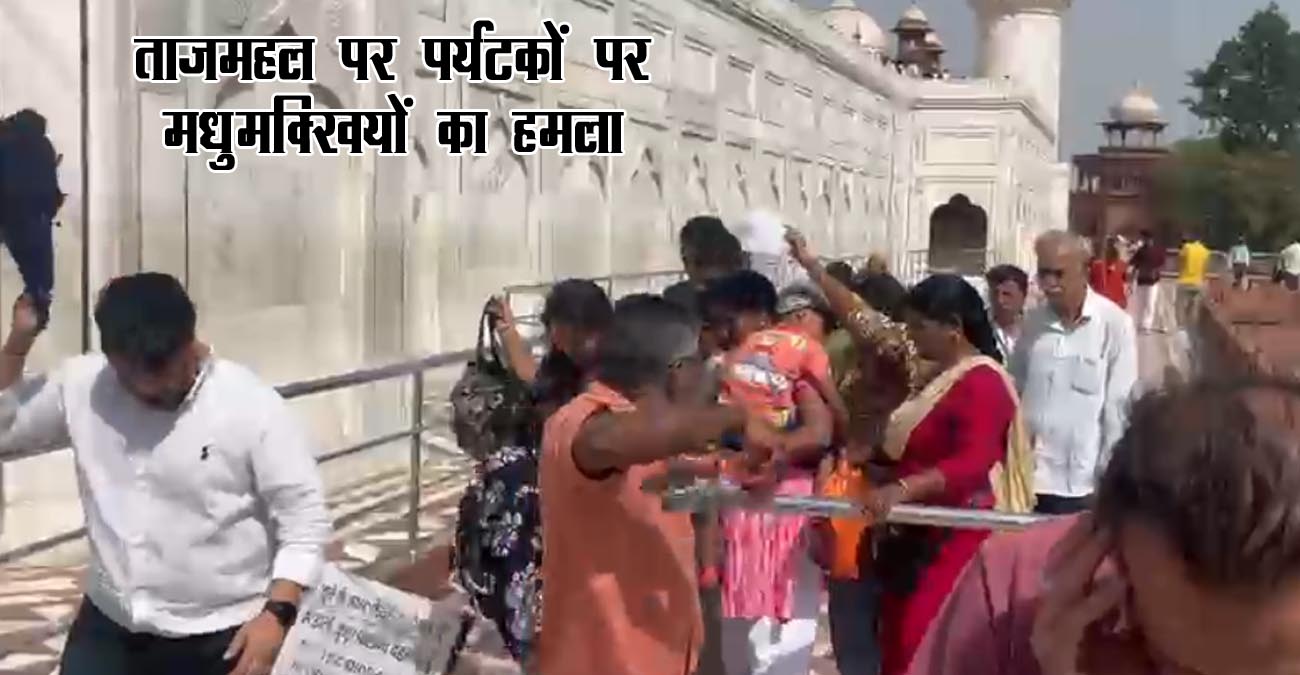 आगरालीक्स…देखें वीडियो, ताजमहल में पर्यटकों पर मधुमक्खियों का हमला. भागते नजर आए पर्यटक. मच गई अफरातफरी