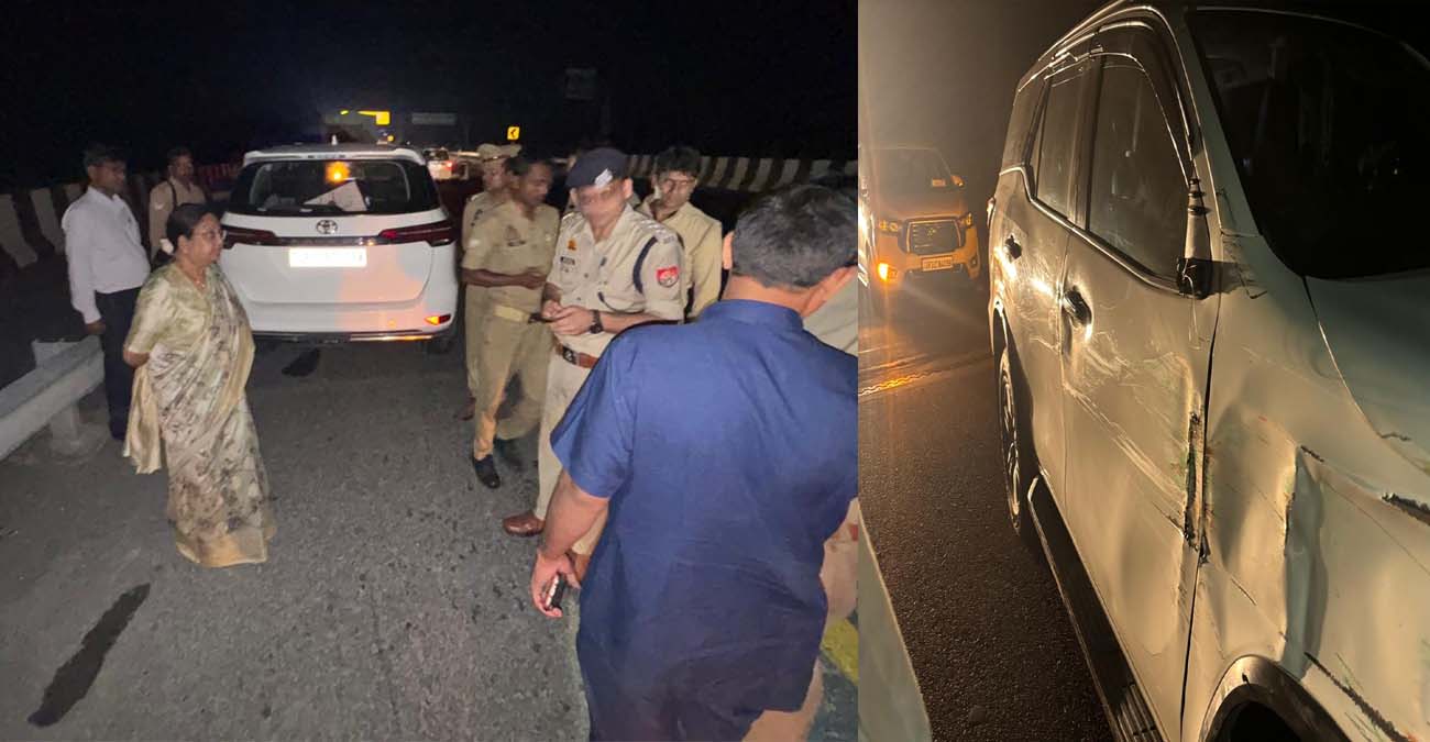 हादसा फिरोजाबाद के समीप एक्सप्रेस वे के 56वें किलोमीटर पर हुआ. कैबिनेट मंत्री बेबी रानी मौर्य अपनी फॉच्र्युनर गाड़ी से जा रही थीं. उनके आगे एक ट्रक चल रहा था जिसका टायर फट गया और वह नियंत्रित होकर कैबिनेट मंत्री की कार से जा टकराया. कार चाल की सूझबुझ से हालातों को तत्काल प्रभाव से काबू कर लिया गया. टक्कर से मंत्री की कार बुरी तरह से क्षतिग्रस्त हो गई. सूचना पर पुलिस फोर्स मौके पर पहुंच गया. ट्रक को कब्जे में ले लिया गया है. हादसे में बाल—बाल बचीं कैबिनेट मंत्री को दूसरी वाहन में सवार होकर लखनऊ रवाना किया गया. पुलिस मामले की जांच कर रही है.