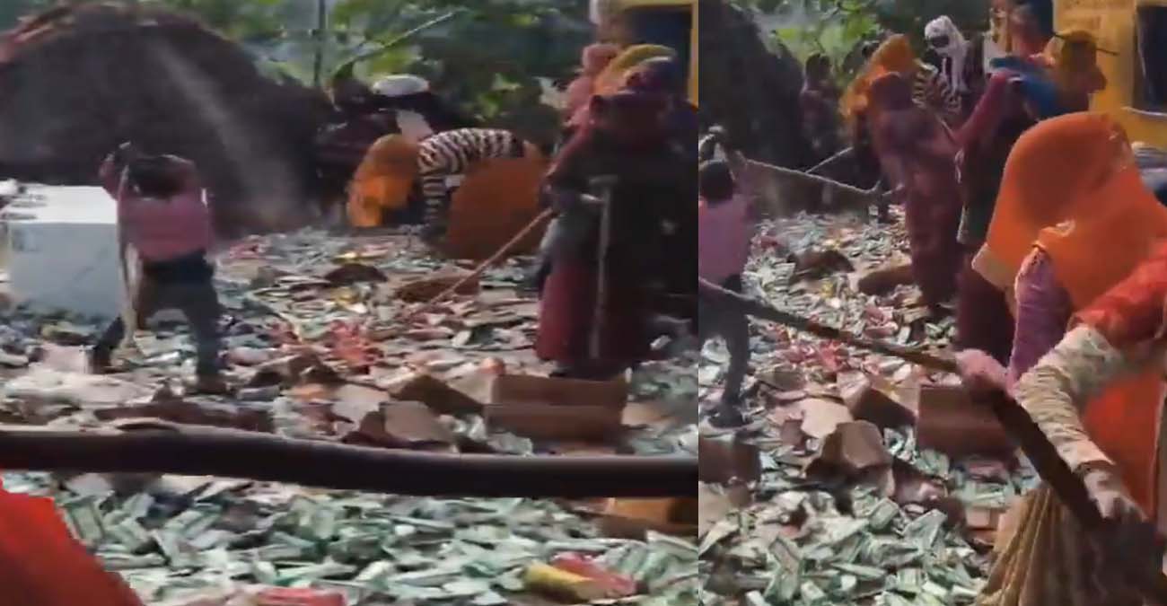 लंबा घूंघट और हाथों में डंडे…आगरा के सैंया थाना क्षेत्र के एक देशी शराब ठेके पर महिलाओं का गुस्सा फूट पड़ा. देशी शराब ठेके पर पहुंची महिलाओं ने शराब की बोतलों को तोड़ डाला. बड़ी मात्रा में शराब नष्टकर दी. महिलाओं का कहना है कि शराब बिक्री से गांव का माहौल् खराब हो गया है. महिलाएं पहले ठेके के अंदर गईं और शराब की बोतलें बाहर निकाल लाई. फिर उन्हें बाहर फेंक कर लाठियों से तोड़ दिया. महिलाओं के साथ बच्चे भी थे. सूचना पर पुलिस पहुंच गई. करीब पांच लाख की शराब का नुकसान बताया गया है. पुलिस मामले की जांच कर रही है.