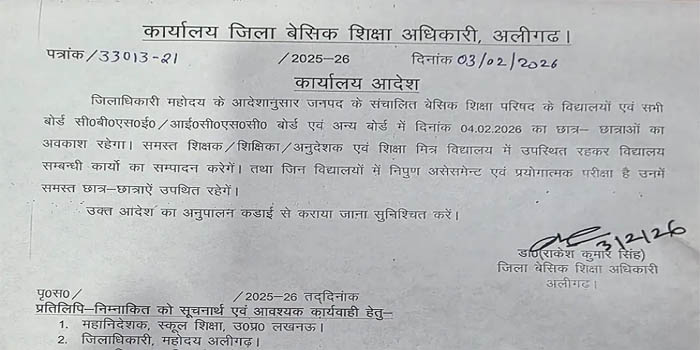 अलीगढ़लीक्स …Aligarh News: कोल्ड डे कंडीशन को देखते हुए अलीगढ़ में स्कूलों की छुट्टी।