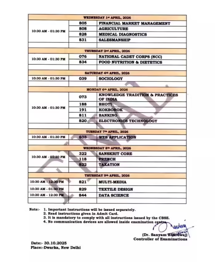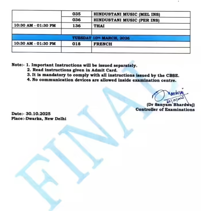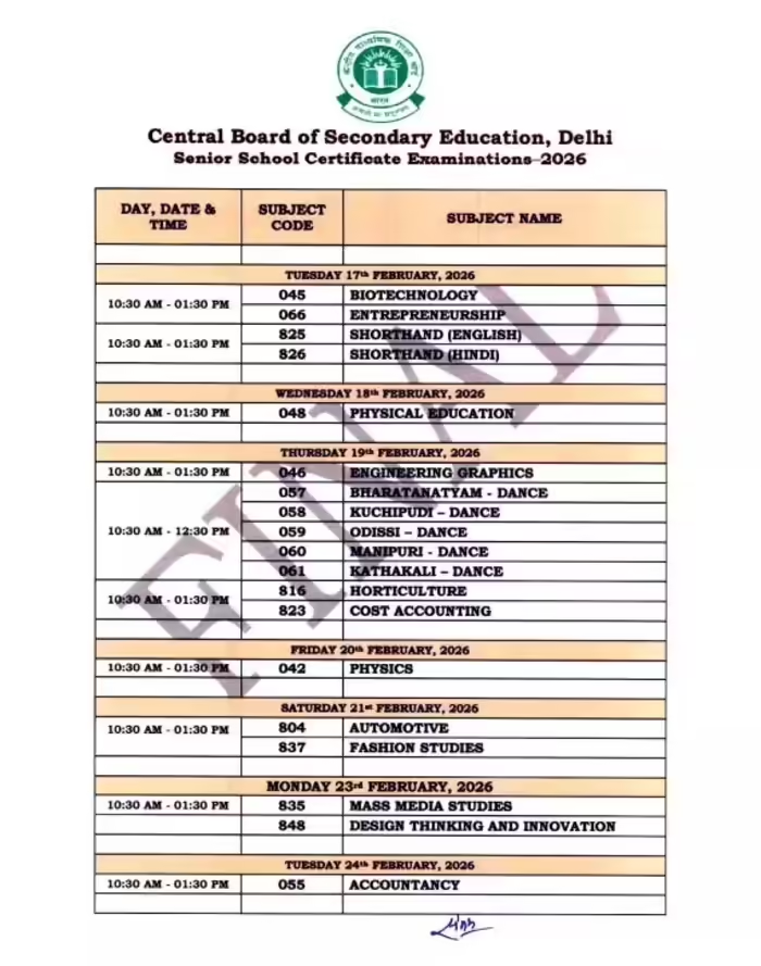 आगरालीक्स…सीबीएसई 10वीं और 12वीं की बोर्ड परीक्षाएं 17 फरवरी से होंगी शुरू. 10वीं का पहला पेपर मैथ्स का तो 12वीं का बायोटेक्नोलॉजी और शॉर्ट हैंड…पूरी डेटशीट देखें