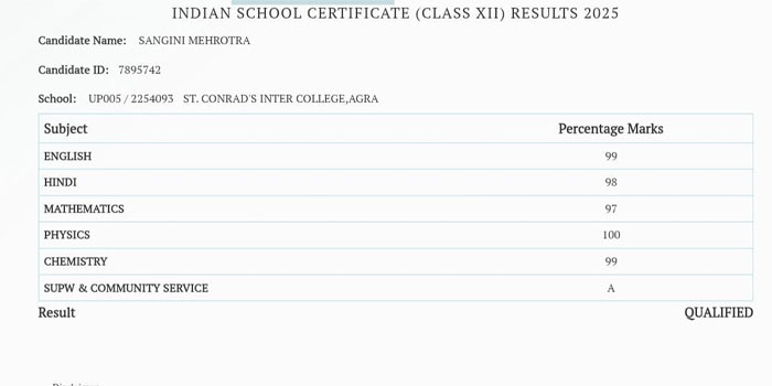 आगरालीक्स …Agra News: आगरा में सीआईएसीई के रिजल्ट में ध्रुव मखीजा ने 12 वीं और मंथन ने 10 वीं में किया टॉप, टॉपर्स की मार्कशीट और किस कालेज में किसने किया टॉप देखें। ( CISCE Result 2025 Agra: Dhruv Makhija with 99.25% in 12th & Manthan Goyal with 99.2%#Agra)