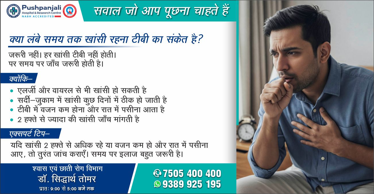आगरालीक्स…लंबे समय से हो रही खांसी को नजरअंदाज न करें. पुष्पांजलि हॉस्पिटल में डॉ. सिद्धार्थ तोमर से लें परामर्श. संपर्क करें 7505400400, 9389925195