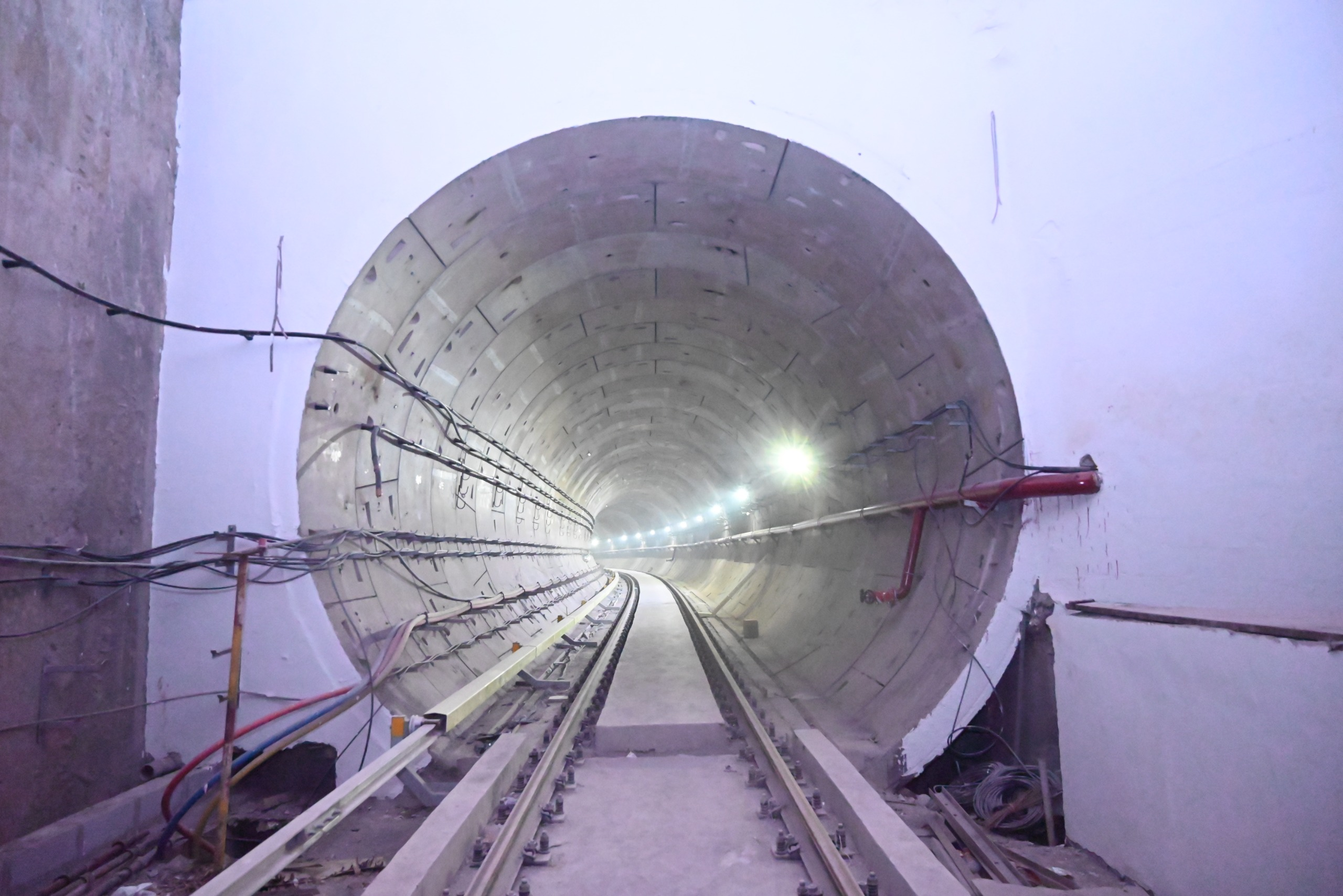 भूमिगत मेट्रो निर्माण हेतु सबसे पहले स्टेशन का निर्माण किया जाता है। स्टेशन का ढांचा तैयार होने के बाद लॉन्चिंग शाफ्ट का निर्माण कर टनल बोरिंग मशीन लॉन्च की जाती है। टीबीएम मशीन के जरिए गोलाकार टनल बनकर तैयार होती है। टनल का आकार गोल होने के कारण सीधे ट्रैक बिछाना संभव नहीं है, इसलिए यहां ट्रैक स्लैब की कास्टिंग की जाती है। इसके बाद इसी समतल ट्रैक स्लैब बैलास्टलेस ट्रैक बिछाया जाता है। बैलास्टलैस ट्रैक निर्माण के दौरान कॉन्क्रीट बीम (प्लिंथ बीम) पर पटरियों को बिछाया जाता है। पारंपरिक तौर पर प्रयोग होने वाले ट्रैक की तुलना बैलास्टलैस ट्रैक अधिक मजबूत होता है एवं इसका मेन्टिनेंस भी काफी कम है।