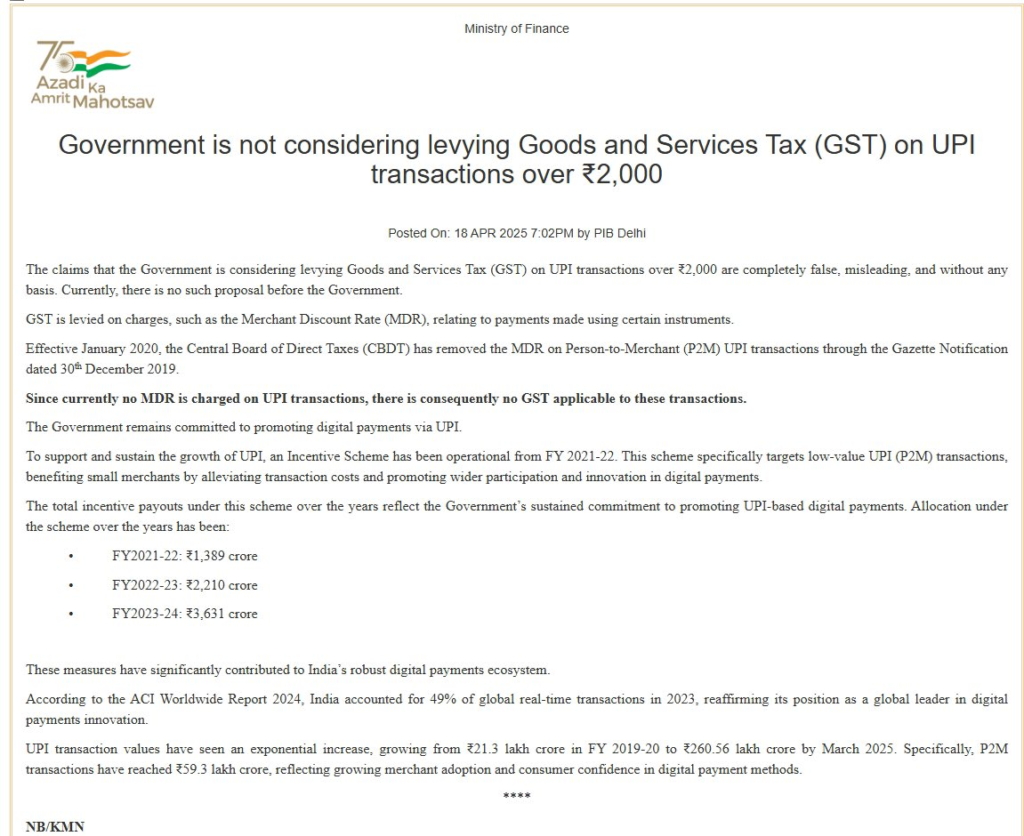 आगरालीक्स…क्या 2000 से ज्यादा के यूपीआई ट्रांजेक्शन पर देना पड़ेगा जीएसटी…जानें इस दावे में कितना सच…सरकार ने जारी किया सर्कुलर