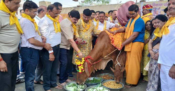 भारत विकास परिषद अमृतम् शाखा द्वारा अंतरराष्ट्रीय मातृ दिवस के अवसर पर वाटर वर्क्स स्थित गौशाला में भावनात्मक एवं राष्ट्रभक्ति से ओतप्रोत गौ सेवा कार्यक्रम का भव्य आयोजन किया गया। भारत माता और स्वामी विवेकानंद के चित्र के समक्ष संरक्षक उमेश बाबू अग्रवाल, आरएस गुप्ता, विजय अग्रवाल, नितेश अग्रवाल और श्रीनाथ गुप्ता, अध्यक्ष कुलभूषण गुप्ता (रामभाई), सचिव राजीव गोयल, कोषाध्यक्ष मयंक जैन, महिला संयोजिका रेखा राज अग्रवाल ने दीप प्रज्वलित कर कार्यक्रम का शुभारंभ किया।गौ माता को साड़ी उढ़ा कर, पूजा एवं आरती कर भोजन अर्पण किया गया। इस सेवा में बच्चों से लेकर वरिष्ठजनों तक ने श्रद्धा से भाग लिया। कार्यक्रम का भावनात्मक चरम उस समय आया जब देश के वीर जवानों को समर्पित “वंदे मातरम्” का सामूहिक गान किया गया और ऑपरेशन सिंदूर की सफलता पर भारत माता को नमन किया गया। अध्यक्ष कुलभूषण गुप्ता (रामभाई) ने नियति भेद नहीं करती है भजन को अपने मधुर कंठ से सजाया। जिससे सभी भाव-विभोर हो गए।