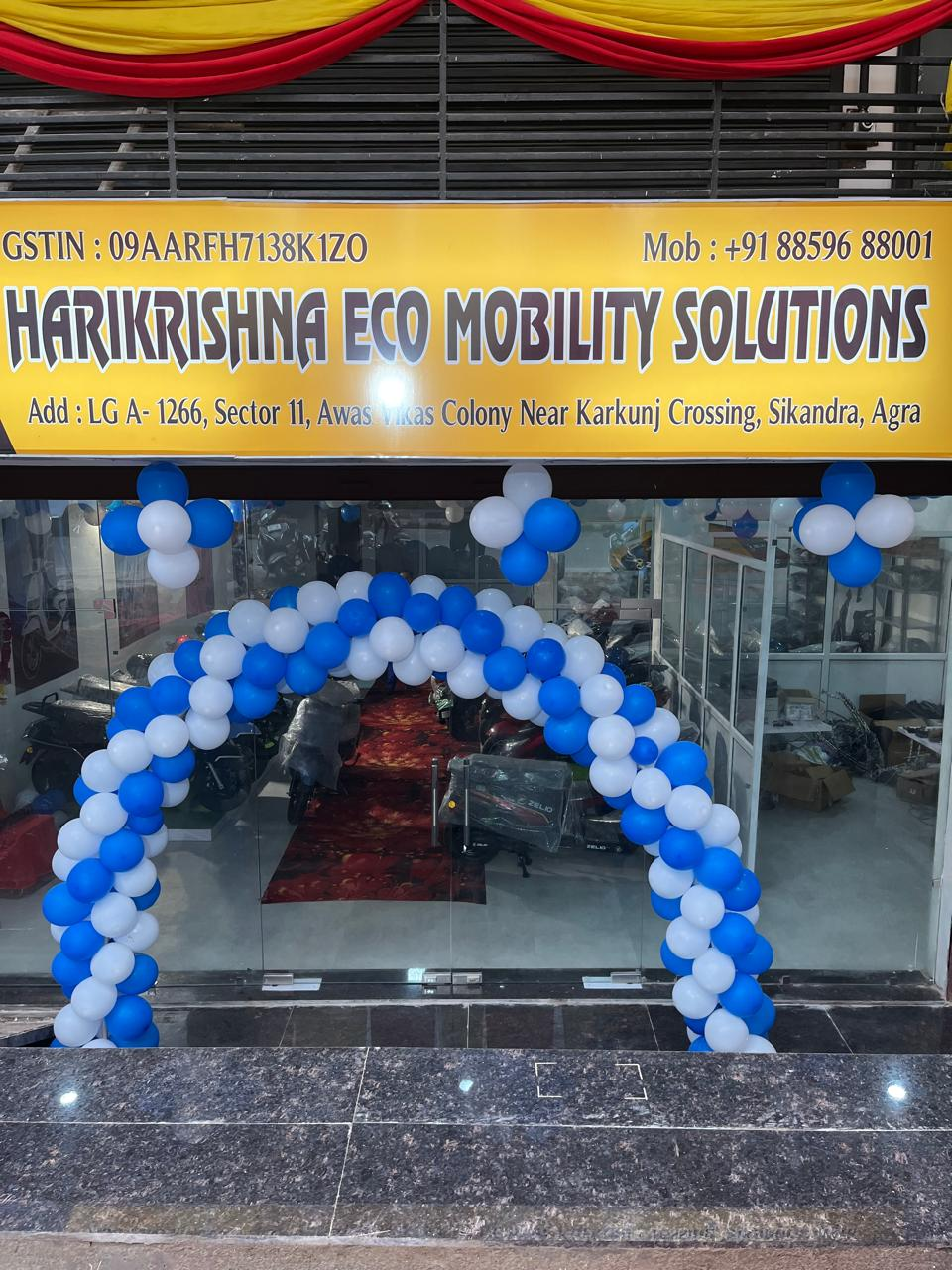 New showroom of electric scooters in Agra. 13 different models of Zelio brand in many colors. Special discount on Navratri