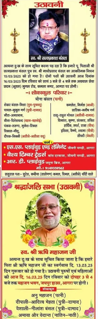 Home आगरा Obituaries Agra on 16th March 2025 #Agra