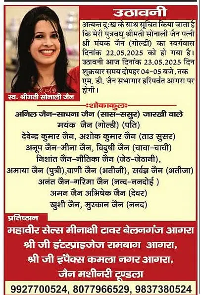 Obituaries Agra on 23rd May 2025