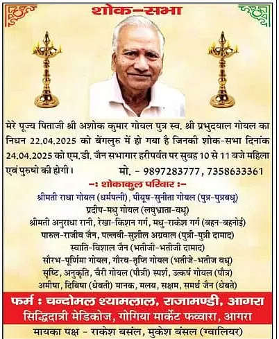 Home आगरा Obituaries Agra on 24th April 2025 #Agra