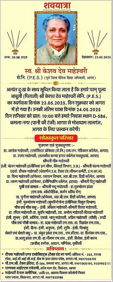 Obituaries Agra on 24th May 2025