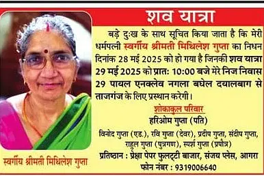 आगरालीक्स:…आगरा में आज उठावनी, आगरालीक्स पर उठावनी प्रकाशित कराने के लिए कॉल करें 999794214
