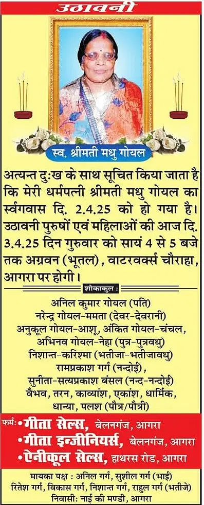 Home आगरा Obituaries Agra on 3rd April 2025 #Agra