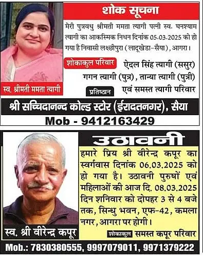Home आगरा Obituaries Agra on 8th March 2025 #Agra