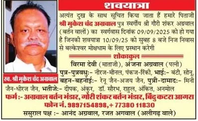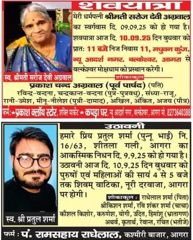 Home आगरा Obituaries of Agra on 10th September 2025