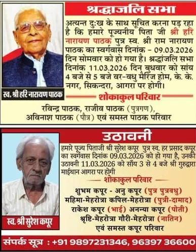 Obituaries of Agra on 11th March 2026