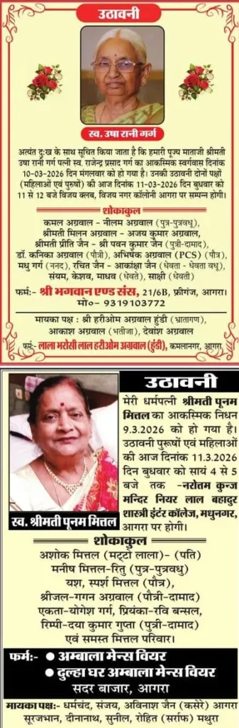 Home आगरा Obituaries of Agra on 11th March 2026