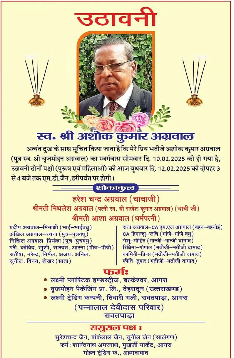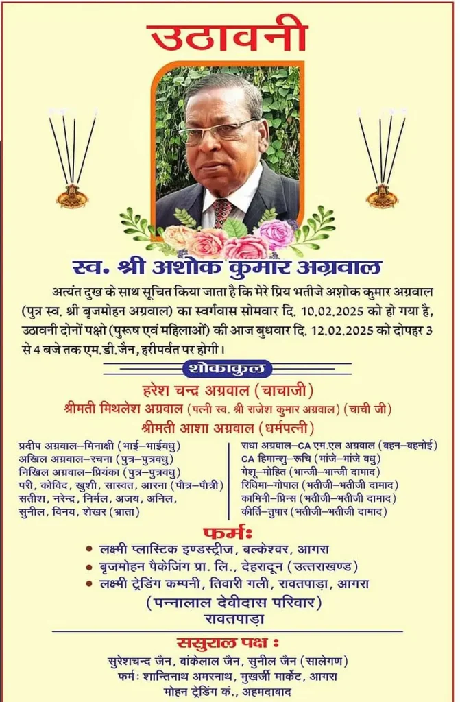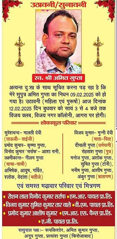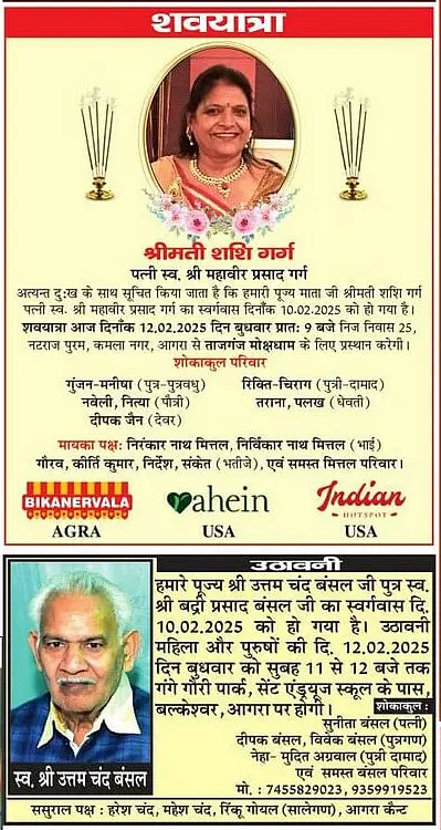 Home आगरा Obituaries of Agra on 12th February 2025 #Agra
