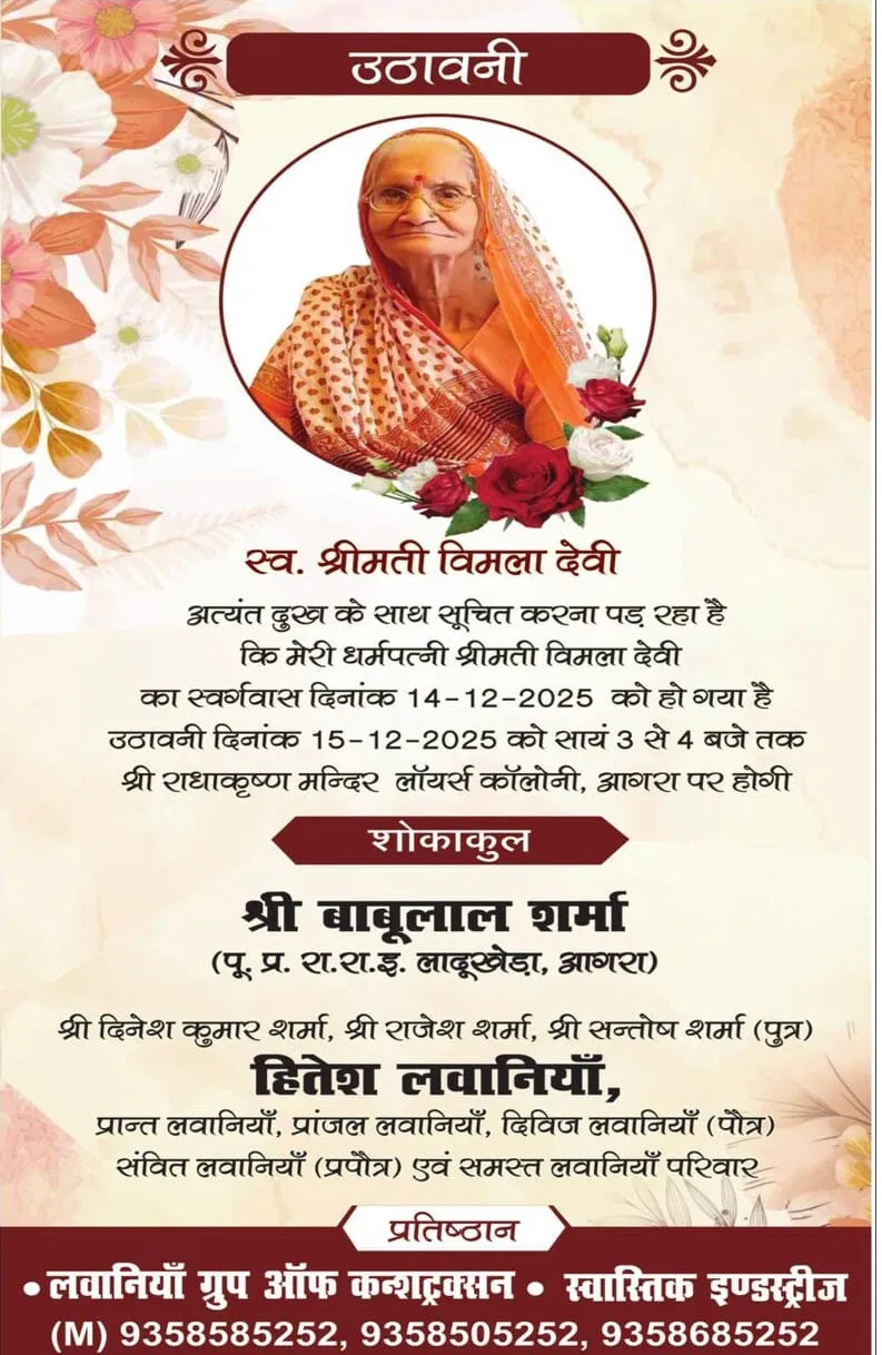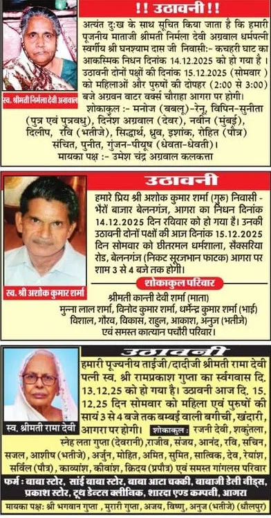 Obituaries of Agra on 15th December 2025