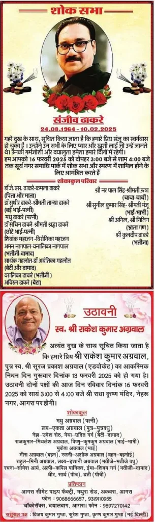 Home आगरा Obituaries of Agra on 16th February 2025 #Agra