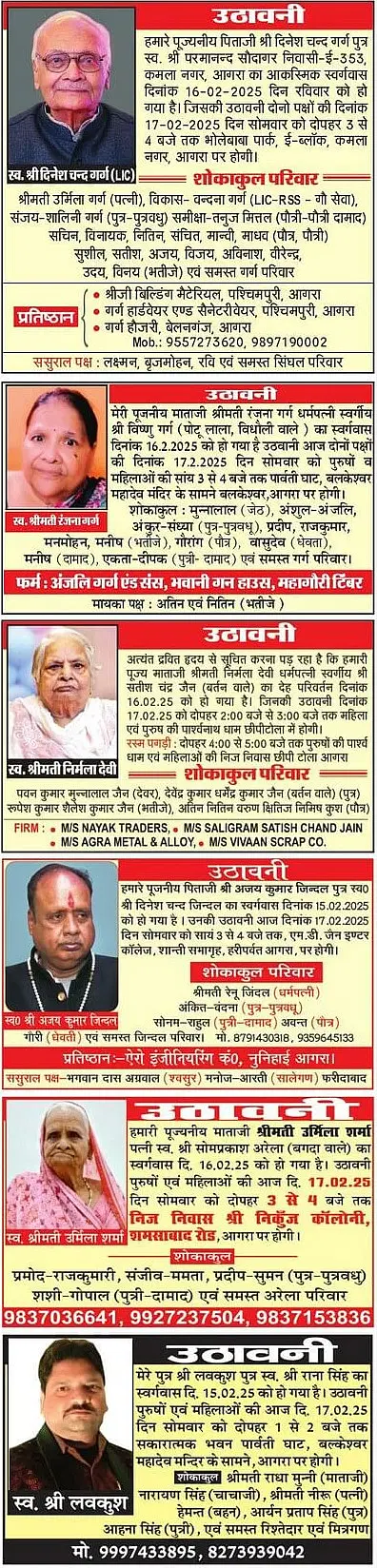 Home आगरा Obituaries of Agra on 17th February 2025 #Agra