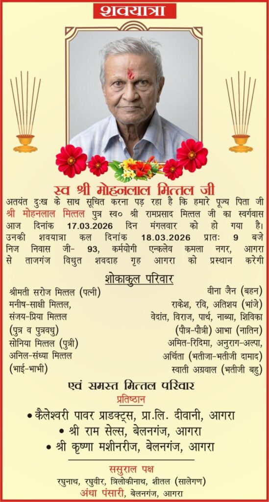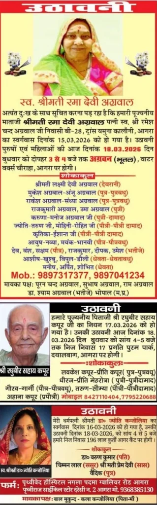 Home आगरा Obituaries of Agra on 18th March 2026